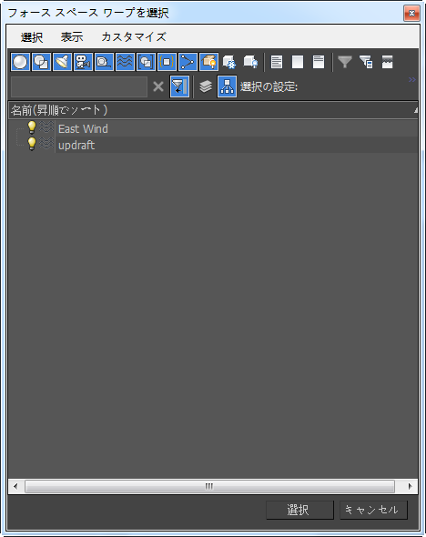 3ds Max により、[フォース スペース ワープを選択](Select Force Space Warps)ダイアログ ボックスが開きます。