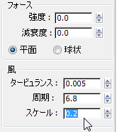 [風](Wind)領域で、設定を次のように変更します。 - [タービュランス](Turbulence) = 0.01