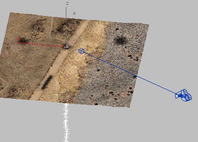 [風](Wind)スペース ワープ アイコンは、矢印が出ている正方形です。シェーディングされたビューポートでは正方形は地表によって隠れていますが、パース ビューポートで矢印がよく見えます。