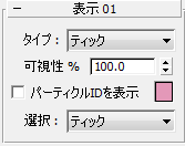 ヒント: パーティクルのカラーが気に入らない場合は、Display のロールアウトのカラー見本か、