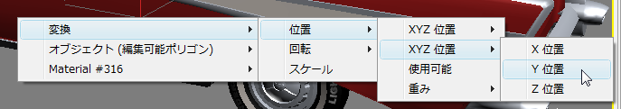 前の手順では、モデルのワールド X 軸方向の移動距離に応じて車輪の回転をコントロールするコントローラの追加方法を学びました。しかし、自動車を X 軸方向以外に回転させようとすると、車輪の回転が減少したり、場合によっては完全に止まってしまいます。そこで、自動車の Y 方向の移動に対応するコントローラを追加する必要があります。