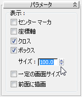 - [パラメータ](Parameters)ロールアウトで[ボックス](Box)をオンにし、[サイズ](Size)を 100.0 に設定します。