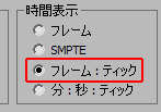 [時間表示](Time Display)領域で[フレーム : ティック](FRAME:TICKS)を選択します。
