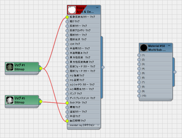 複数の木のマップを含むマルチ/サブ オブジェクト マテリアルを作成する: