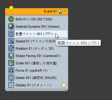 - Placement Paint オペレータをコンテナからドラッグし、Event 01 の Position Icon オペレータの上にドロップして Position Icon と置き換えます。