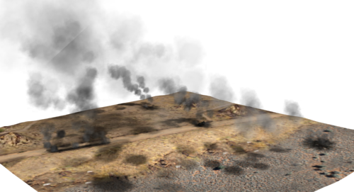 Particle Paint を使用して地表の他の領域から煙を放出させる: