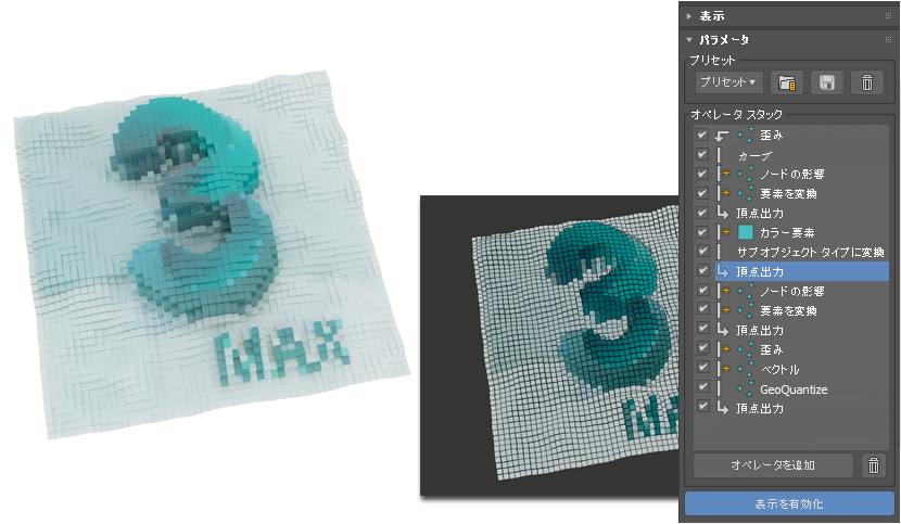 シーケンス内の複数のオペレータ タイプを使用して、複雑なアニメート効果を作成する例を示します。