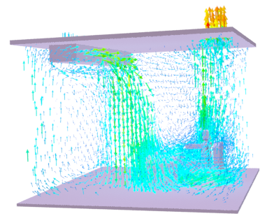 CFD シミュレーションの[速度](Velocity)フィールドは、矢印で視覚化することができます。この矢印の長さとカラーは、相対的な位置の速度によって決定されます。