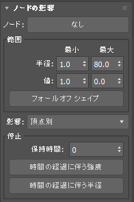 - 影響が及ぶ半径(最小値から最大値まで)を設定します。