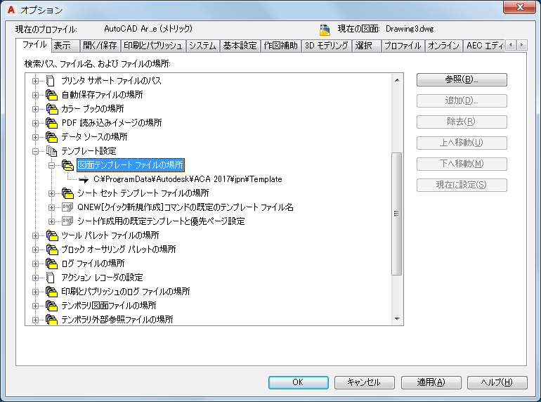[オプション]ダイアログ ボックスでテンプレート ファイルの場所を設定