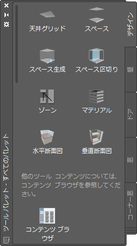 既定の[マテリアル]ツールを設定し、それを使用して既存のマテリアル定義を図面内の AEC オブジェクトのコンポーネントに適用するには、次の操作を実行します。既定では、このツールは標準のマテリアル定義を適用しますが、ツールのプロパティを変更することにより、Material Definitions (Imperial).dwg または Material Definitions (Metric).dwg ファイルで定義されている任意のマテリアルを指定できます。