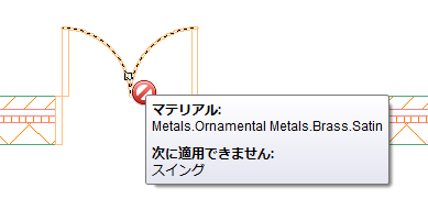 コンポーネントが現在のビュー方向でマテリアルをサポートしていないか、マテリアルを全くサポートしていないか、外部参照内にある場合は、マテリアルを適用できないことがツールチップに表示され、カーソルは、そのコンポーネントの上にある間、斜線の入った赤い円に変わります。