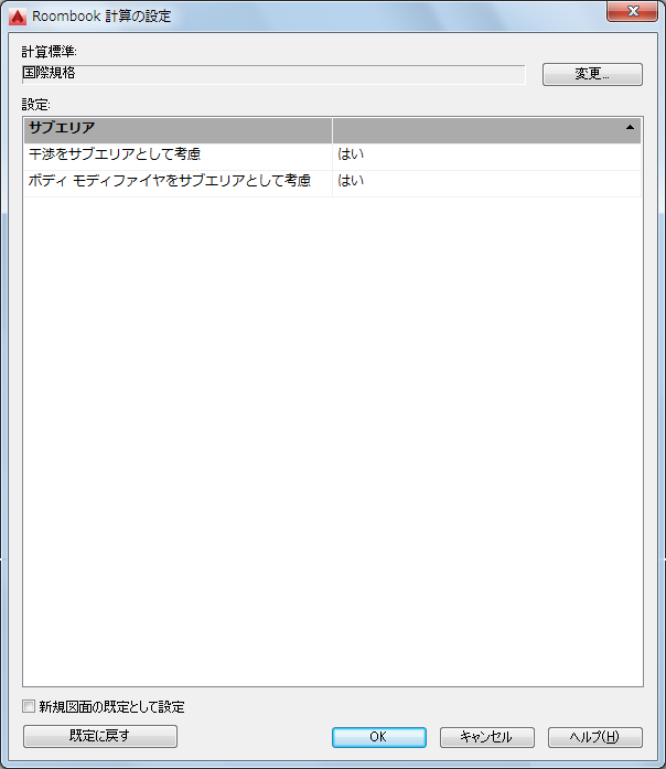 これで、定義されている計算標準が現在の設定となり、次回のルーム量計算に使用されます。