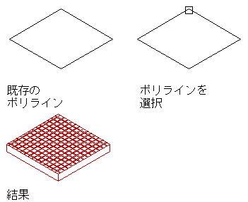 | スラブの上面をポリラインに揃えるには(投影モードを使用している場合は、基準高さに揃える) | t と入力します。 |