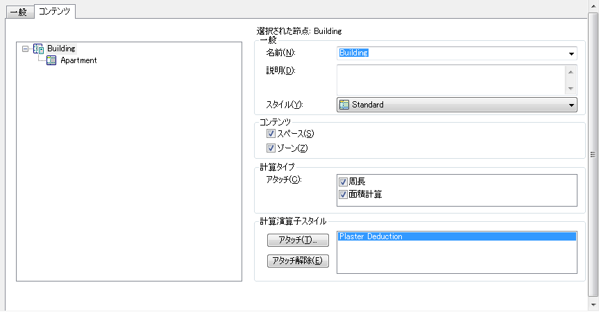 たとえば、カーペット ゾーン ノードで必要なカーペットの量を計算するようにしたり、幅木ゾーン ノードで必要な幅木の量を計算するようにすることができます。 カーペット ゾーン ノードでは、[面積を計算]で[はい]を選択します。 幅木ゾーン ノードでは、[周長を計算]で[はい]を選択します。