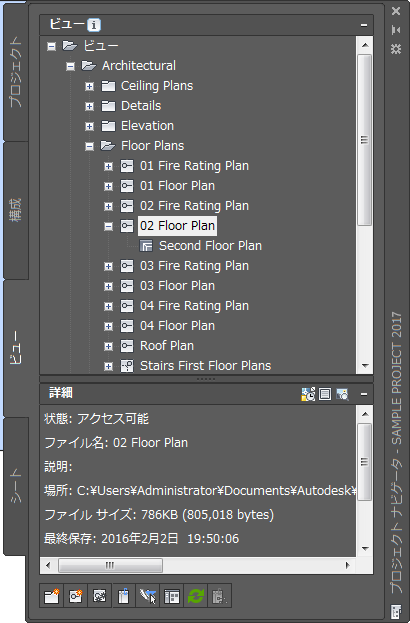 | 新しいビュー図面に名前を付けるには | 名前を入力します。プロジェクト番号がプロジェクト ファイル名の接頭表記として使用される場合は、ここで接頭表記を入力する必要はありません。接頭表記が付いた正式な名前は、[ファイル名]の下に表示されます。 |
