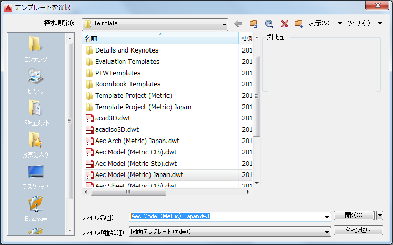 ソフトウェアで提供されている図面テンプレートは C:¥ProgramData¥Autodesk¥ACA <バージョン>¥jpn¥Template にあります。テンプレート ファイルには、拡張子 DWT が付いています。