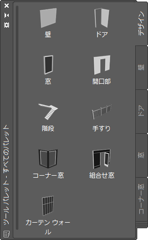 CAD マネージャまたは他のユーザにより作成されたカスタム パレットには、プロジェクトやオフィス標準に合わせてカスタマイズされたプロパティを備えた開口部ツールが含まれていることもあります。