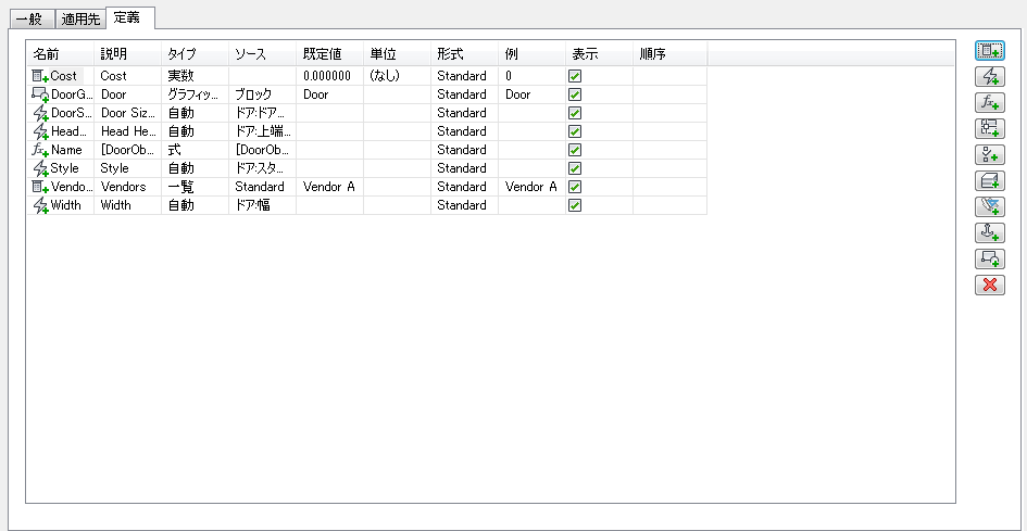 ドア オブジェクトに適用されるプロパティ セット定義