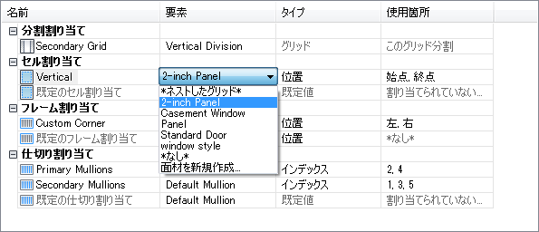 カーテン ウォール ユニット内にネストしたグリッドを作成するには、次の手順を実行します。ネストしたグリッドとは、グリッド内のグリッドです。それぞれのネストしたグリッドには、独自の分割、セル割り当て、フレーム、マリオンがあります。既定では、ネストしたグリッドに対してフレームが選択解除になります。