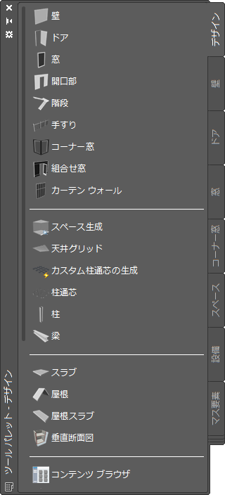 | CAD マネージャが作成したカスタム ツール パレット | CAD マネージャがプロジェクトや会社の標準に合わせてカスタマイズした組合せ窓スタイルとプロパティ |