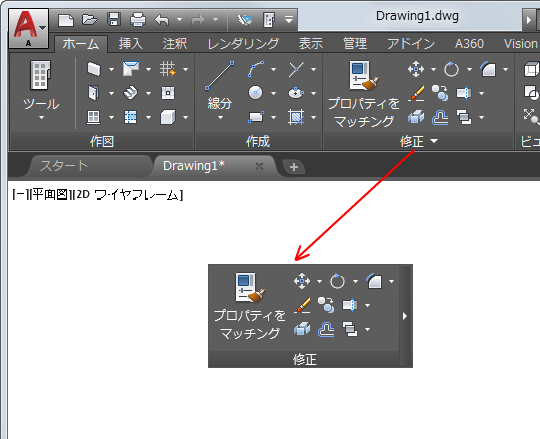 一部のリボン コマンドは、ドロップダウン メニューにグループ化されています。これらのコマンドにアクセスするには、コマンドの横にある矢印をクリックします。