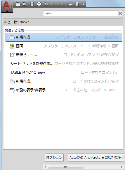 アプリケーション メニューでは、コマンドを検索して、一致リストからコマンドを選択することができます。検索結果は次の場所から取得されます。