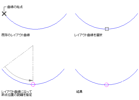 | 指定した位置に節点を配置するには | [Enter]を押します。節点の数を入力し、節点の位置を指定します。位置を選択するか、曲線の開始点からの距離を入力してください。 |
