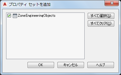 - [プロパティ セットを追加]ダイアログ ボックスで[ZoneEngineeringObjects]を選択し、[OK]をクリックします。