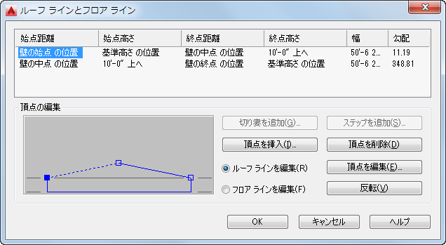 - ルーフ ラインまたはフロア ラインを反転するには、[反転]をクリックします。