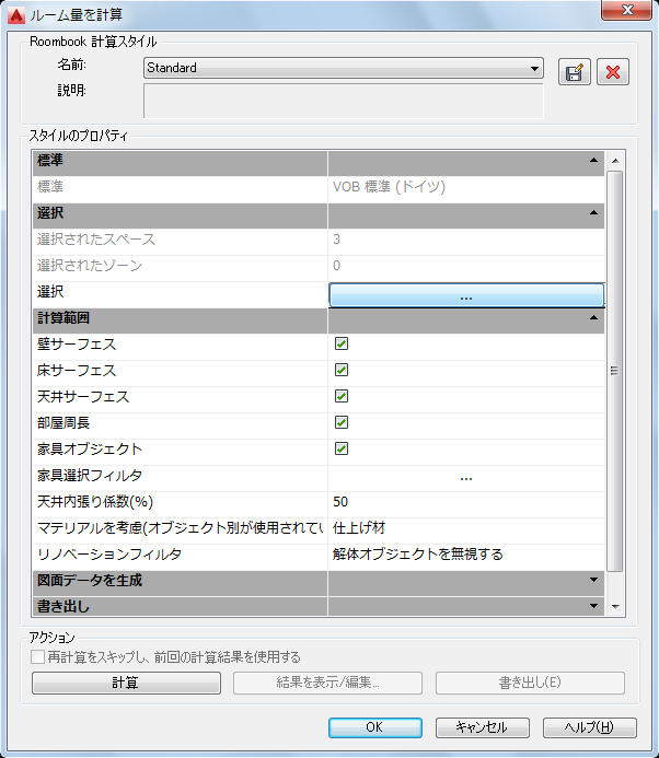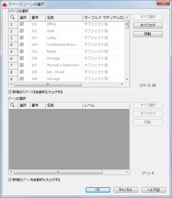 - このダイアログ ボックスでは、計算するスペースとゾーンのみをチェックボックスで選択することができます。