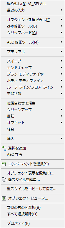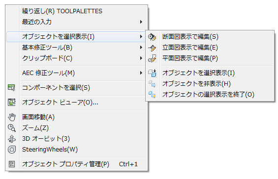 図面の汎用的なコンテキスト メニュー