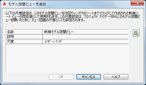 | モデル空間ビューの説明を入力するには | [説明]の設定をクリックして、モデル空間ビューの説明を追加します。 |