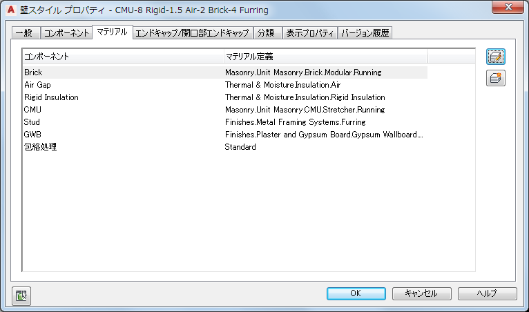 マテリアル定義は、AutoCAD Architecture の表示システムにおいて不可欠なものであり、スタイルおよびオブジェクト定義とともに使用して、平面図、断面図、立面図内の表示を自動化するための強力なツールです。さらに、自動プロパティ定義 "マテリアル" を使用して、マテリアル割り当て(およびマテリアルのプロパティ)と、マテリアルが割り当てられているオブジェクトの集計表を結びつけることができます。