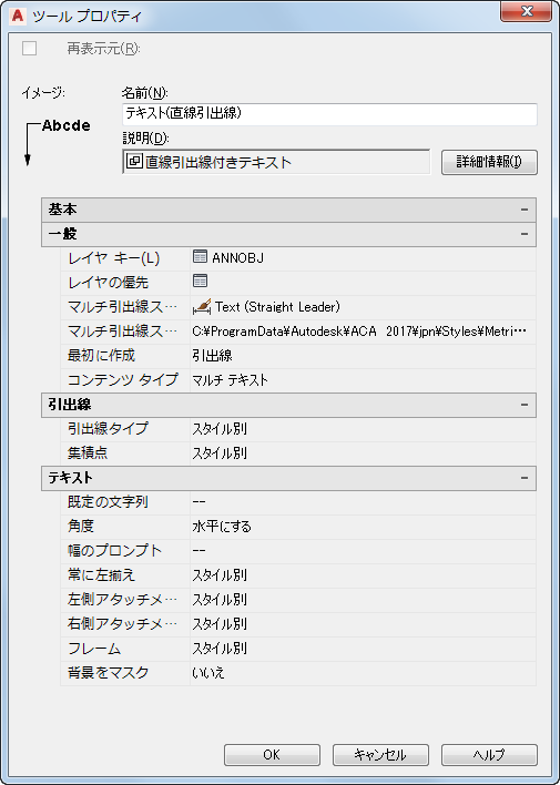 - 引出線のツール プロパティは慎重に検討してください。単純な引出線をより少ない時間でより標準化された形で作成できる、いくつかの事前設定があります。