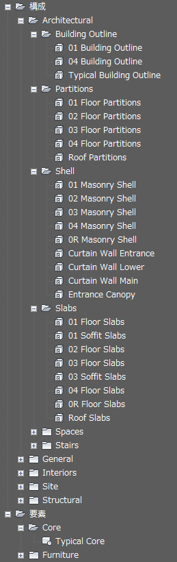 図面エクスプローラは、プロジェクト ナビゲータの[構成]タブ、[ビュー]タブ、[シート]タブに共通のツリー ビューです。図面エクスプローラには、図面ファイルが編成されます。プロジェクト ナビゲータの[プロジェクト]タブ以外のタブには、関連するプロジェクト図面ファイル(要素、構成、ビュー、シート)が図面エクスプローラのツリーとして表示されます。