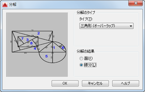 スペースが分解されるサブ図形のタイプと、分解時に分解されたスペースが変換される AutoCAD 図形のタイプを指定するには、次の操作を実行します。