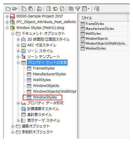 [プロパティ セットの定義]を展開し、[窓スタイル]を選択します。