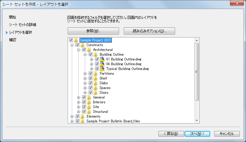 - シート タイトルにファイル名の接頭表記を付加するには、またはフォルダ構造に基づいてシート セットのサブセットを作成するには、[読み込みオプション]をクリックし、オプションを選択して、[OK]をクリックします。