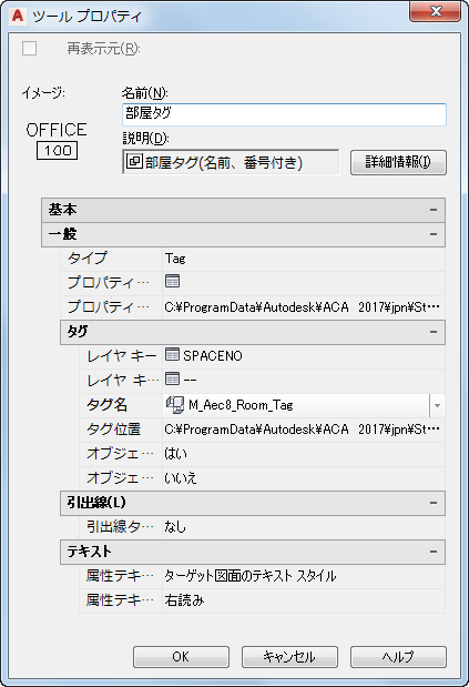 または、ツール パレット内でツールを選択し、右クリックして[プロパティ]をクリックします。次に、プロパティ ワークシートで[再表示元]を選択します。
