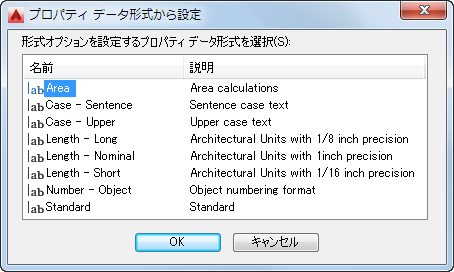 選択したプロパティ データ形式の設定は、フィールドの形式コードにコピーされます。
