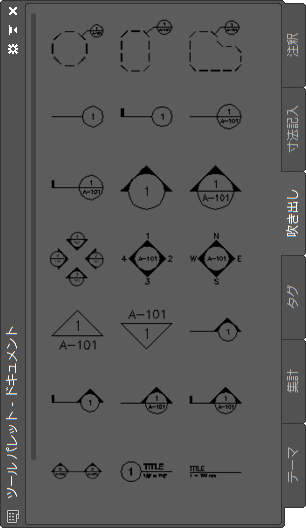 CAD マネージャまたは他のユーザにより作成されたカスタム パレットには、プロジェクトやオフィス標準に合わせてカスタマイズされたプロパティを備えた吹き出しツールが含まれていることもあります。