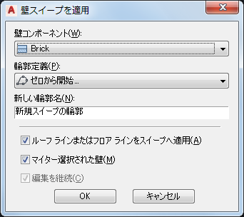 | スイープを含む壁とその他の壁の交点でマイター接続するには | [マイター選択された壁]を選択します。 |