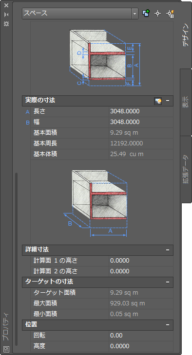 3D 自由形状スペースを使用している場合は、切断面の 2 つの異なる高さで面積を計算できます。 これは、異なる高さが計算される屋根裏に便利です。