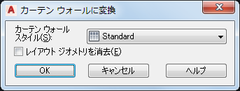 既存のマス要素またはマス要素グループの面や、メッシュ、ルールド サーフェス、ルールド ソリッドなどの AutoCAD 図形の面を基にしてカーテン ウォールを作成するには、次の操作を実行します。これは、建築モデル開発後に役立ちます。それぞれの面ごとに、独立したカーテン ウォールが作成されます。変換過程で、セル、フレーム、マリオンの外観や、カーテン ウォール グリッドのセルの数とサイズを決定するカーテン ウォール スタイルを選択するよう求めるプロンプトが表示されます。