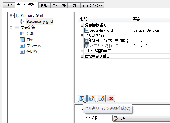 - [建築オブジェクト]を展開し、[カーテン ウォール スタイル]を展開します。