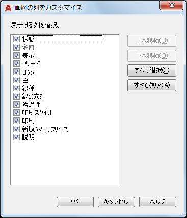 [画層プロパティ管理]の列の表示と順序をコントロールします。