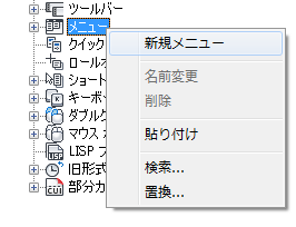 注: コマンドをプルダウン メニューに追加した後、そのコマンドの表示名を変更できます。これにより、プルダウン メニュー項目の表示や、[Alt]キーを使用したキーボード ナビゲーションでアクセスする方法をコントロールすることができます。アクセス方法を定義するには、プルダウン メニューの下位のプルダウン メニュー項目を選択し、[プロパティ]ペインで[名前]プロパティを変更します。