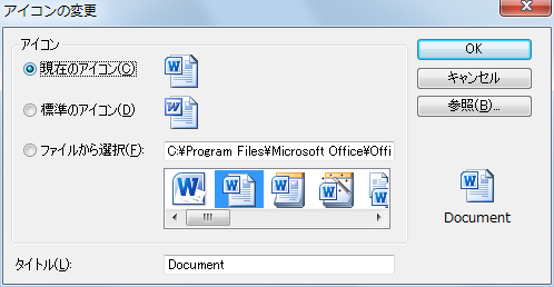 [参照]ダイアログ ボックス(標準のファイル選択ダイアログ ボックス)が表示され、ファイルからアイコンを選択できます。