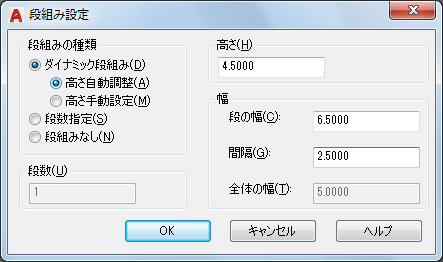 段および間隔の幅値が表示され、値を指定できます。間隔の値は、既定の文字の高さの 5 倍です。